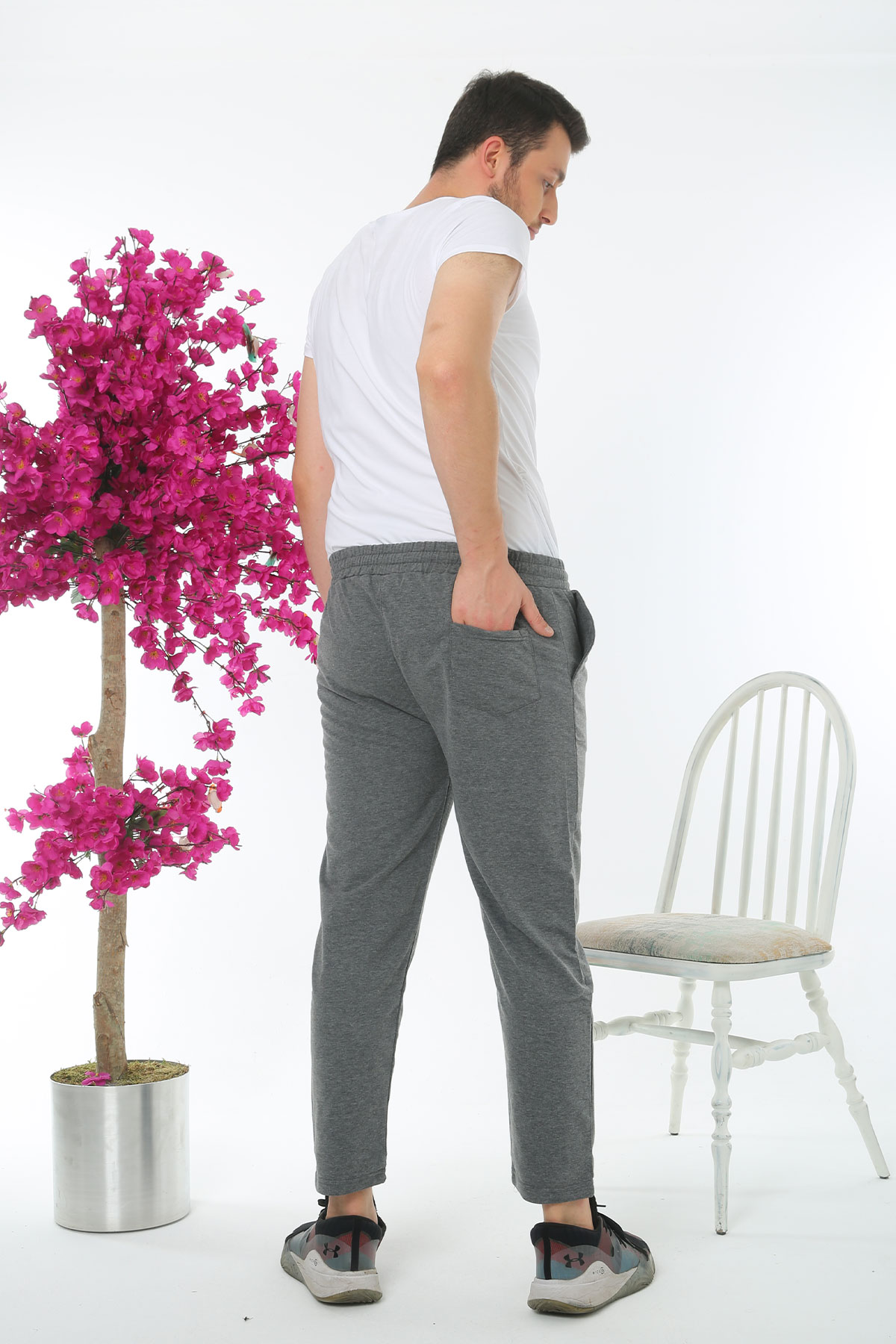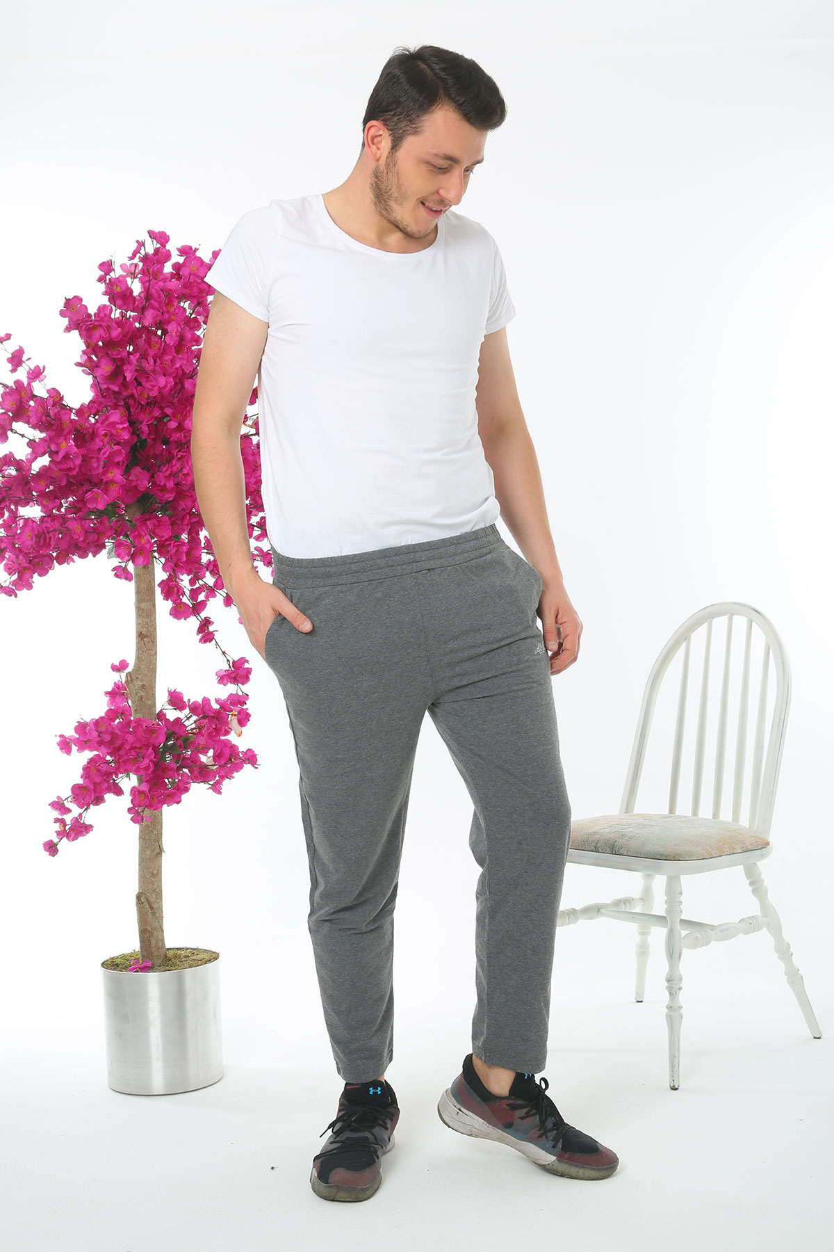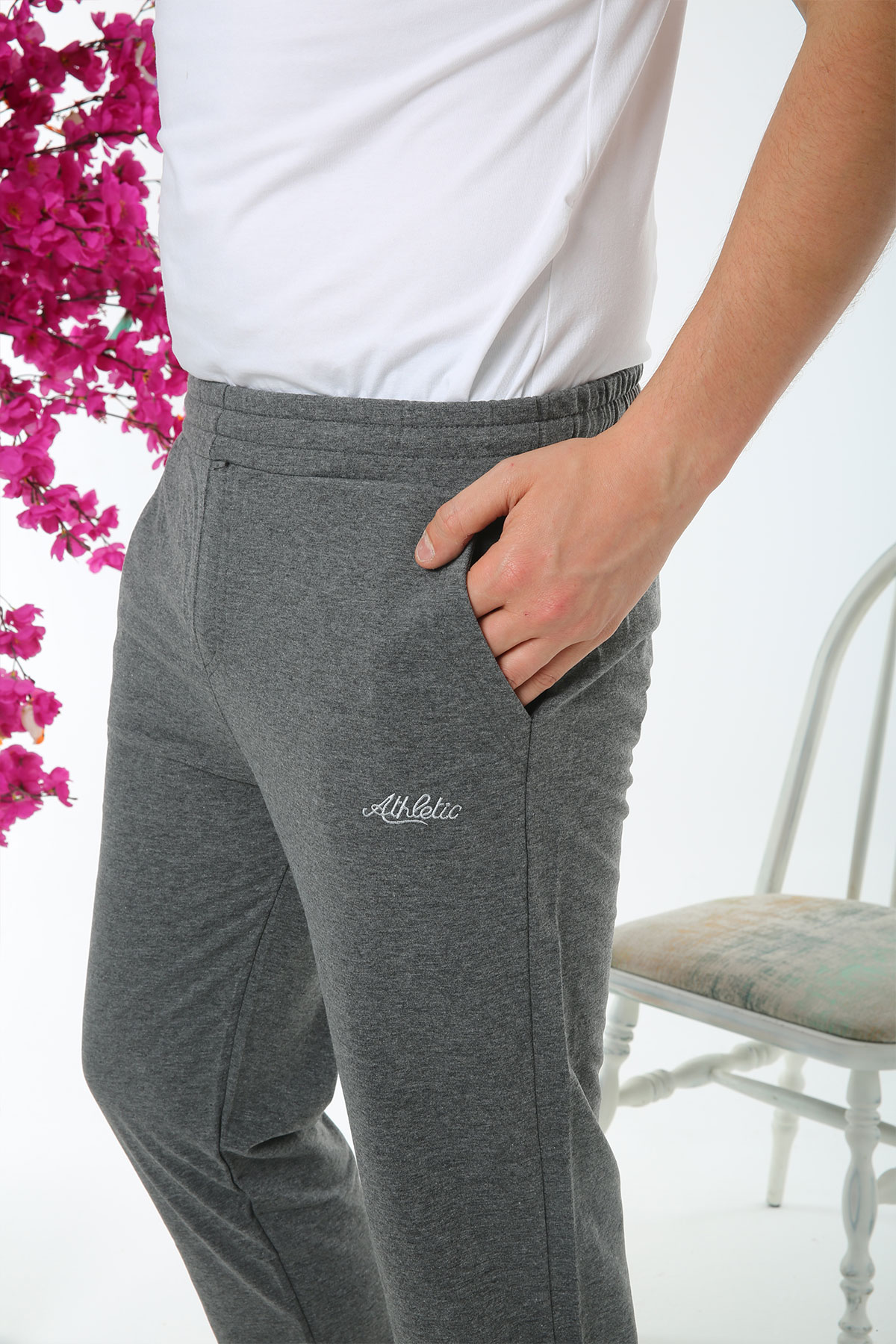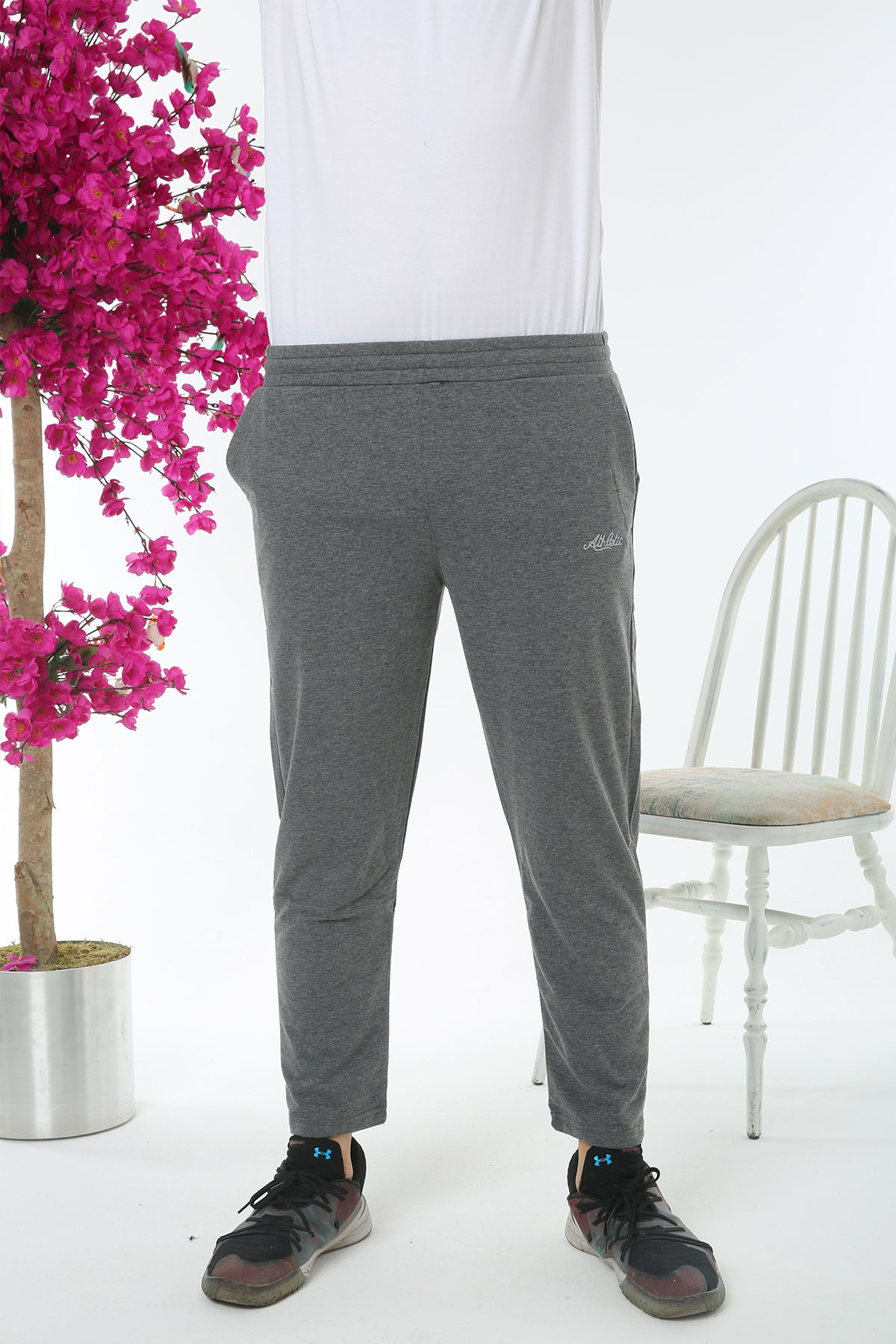 Pogi Erkek Tek Alt Eşofman Büyük Beden - Füme