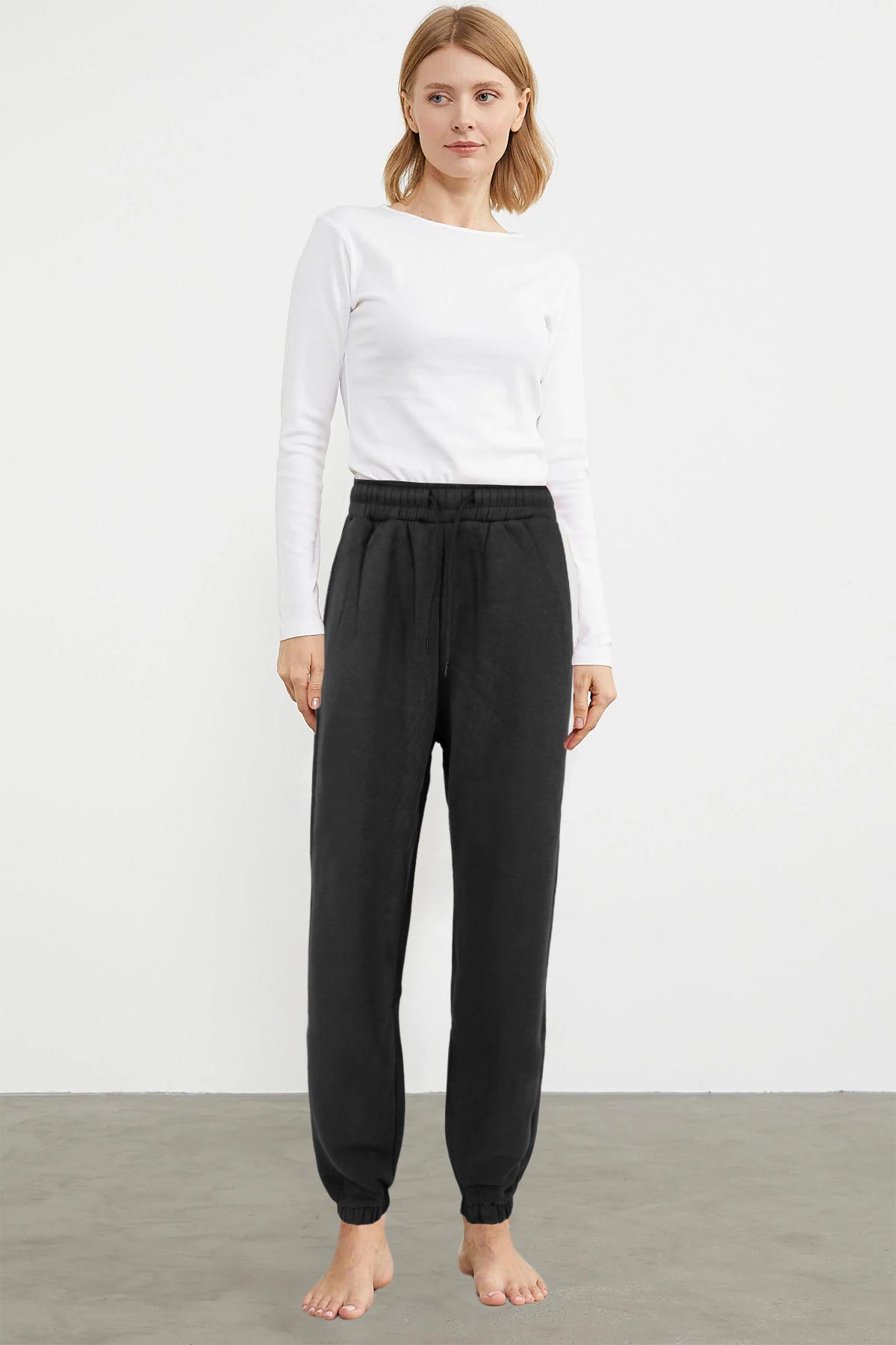 Pogi Kadın Büyük Beden Tek Alt Eşofman 3 İplik Paça Manşetli - Siyah