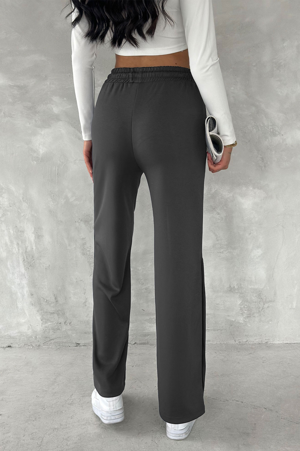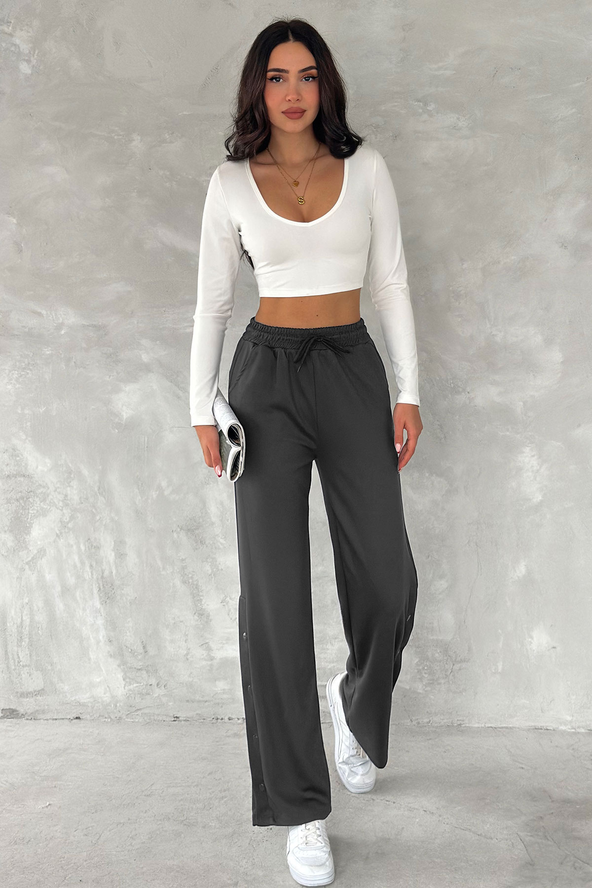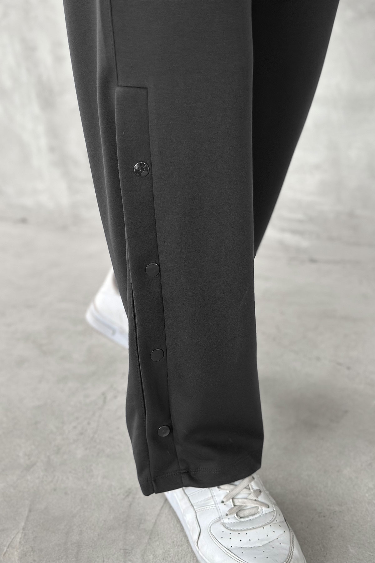 Pogi Kadın Eşofman Altı Uzun Bol Paça Çıtçıtlı - Füme