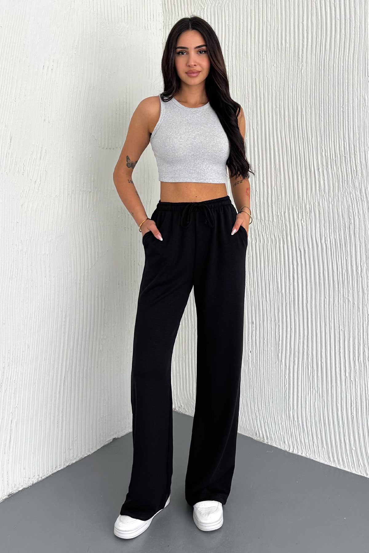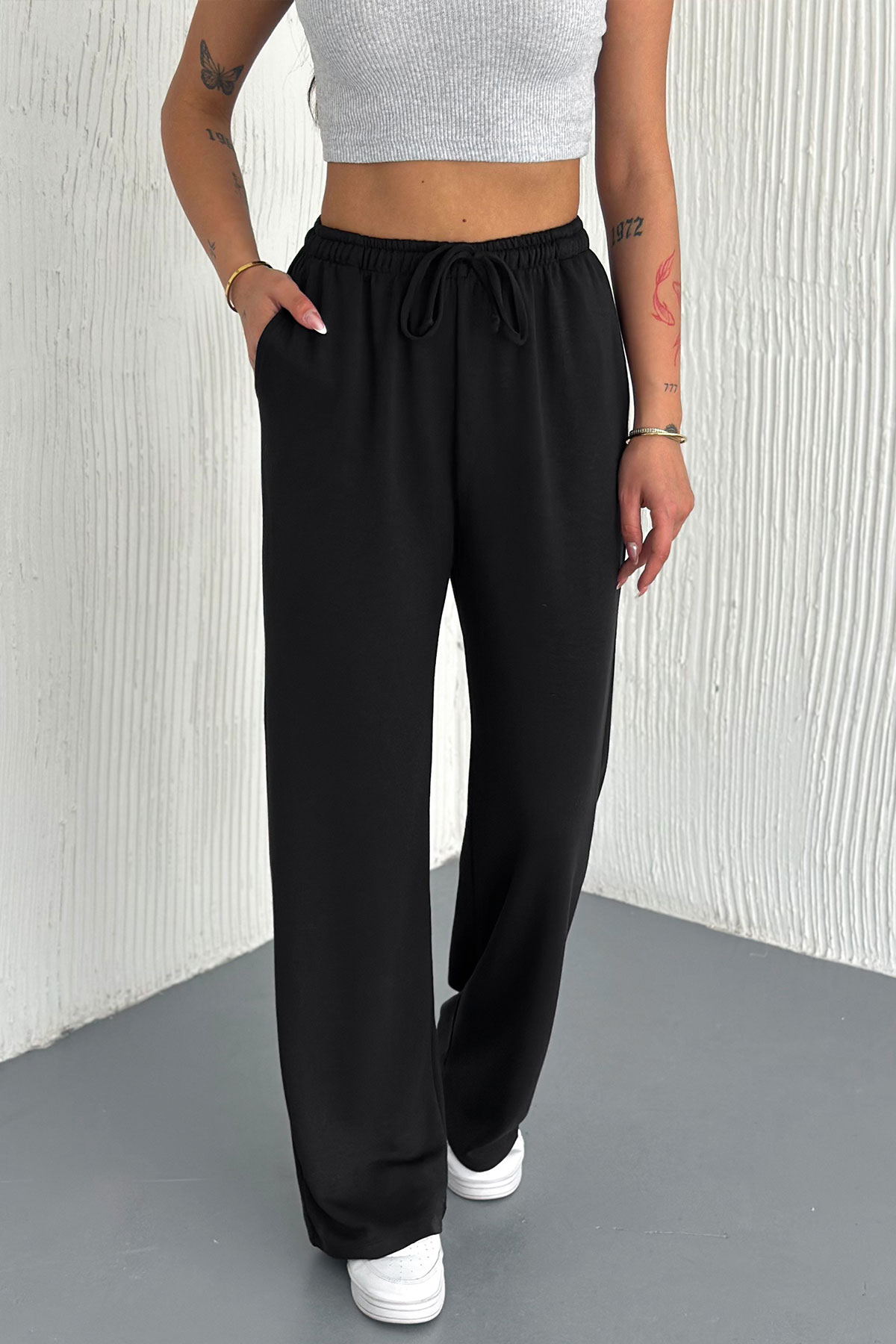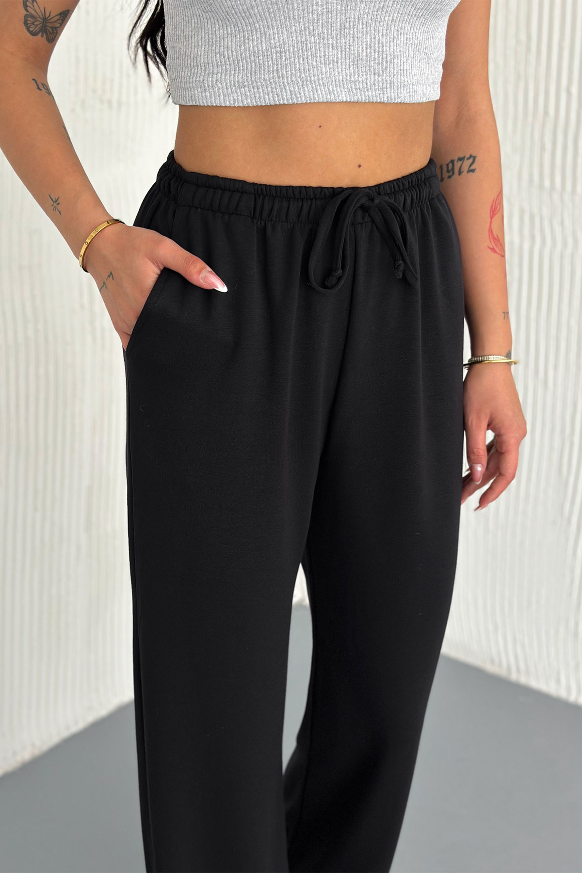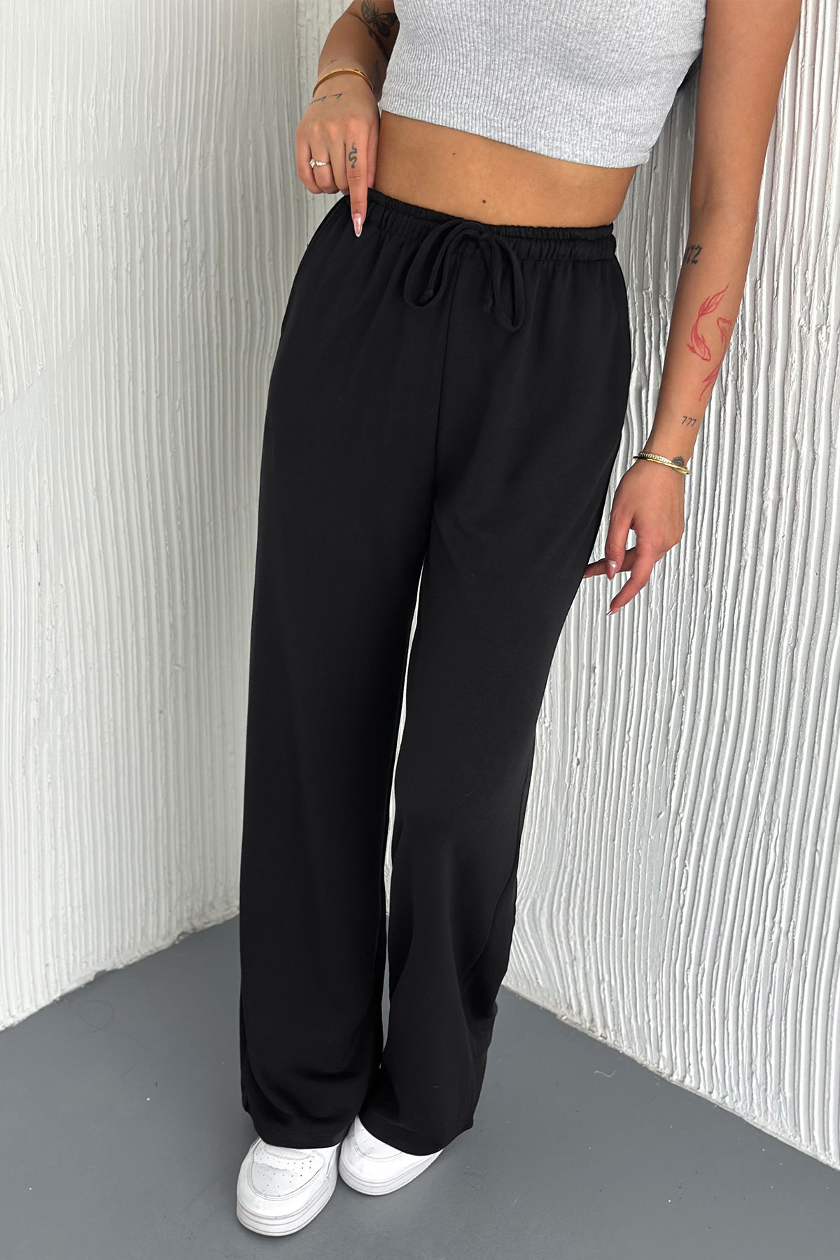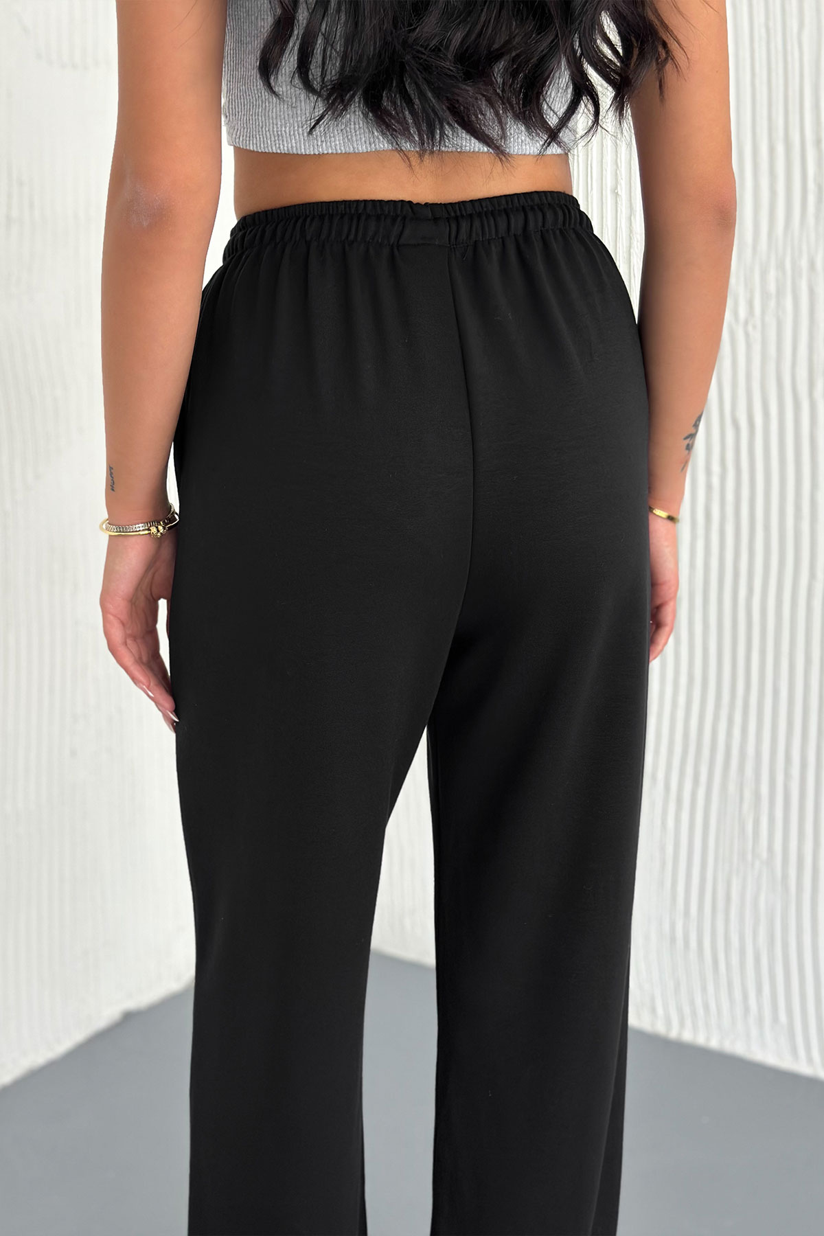 Pogi Kadın Eşofman Altı Uzun Bol Paça Modal - Siyah