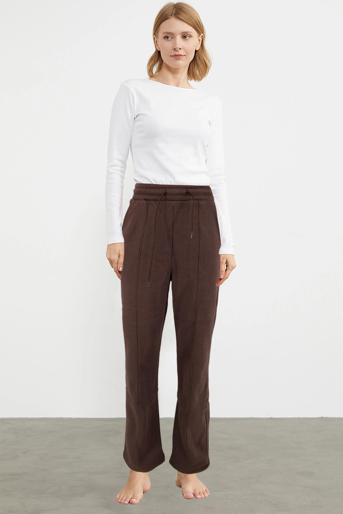 Pogi Kadın Tek Alt Eşofman 3 İplik Çimalı Boru Paça - Acı Kahve