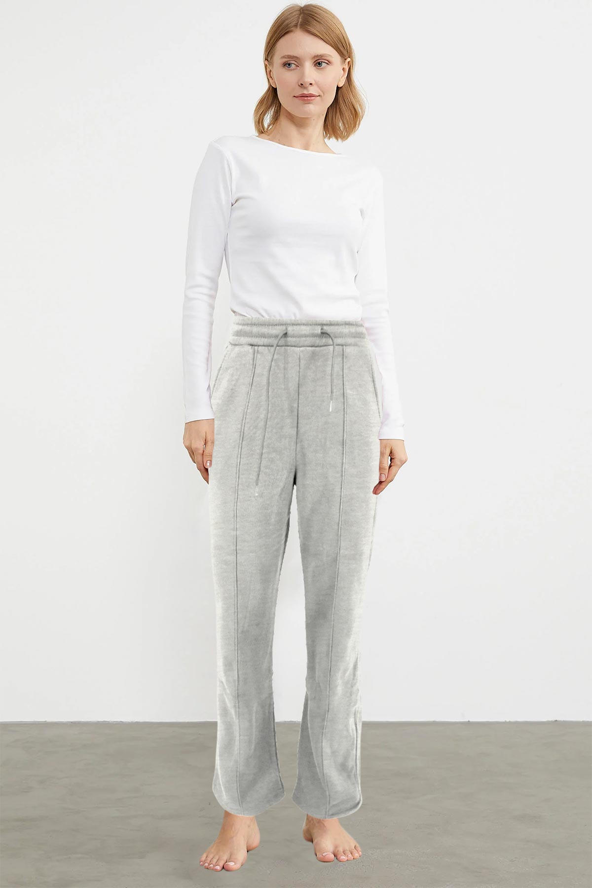 Pogi Kadın Tek Alt Eşofman 3 İplik Çimalı Boru Paça - Gri