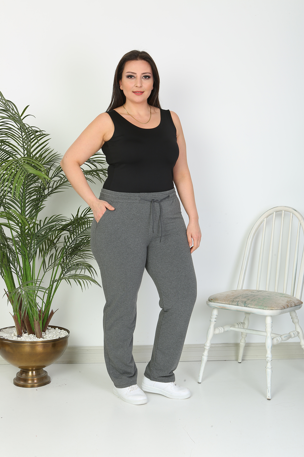 Pogi Kadın Tek Alt Eşofman Büyük Beden - Füme