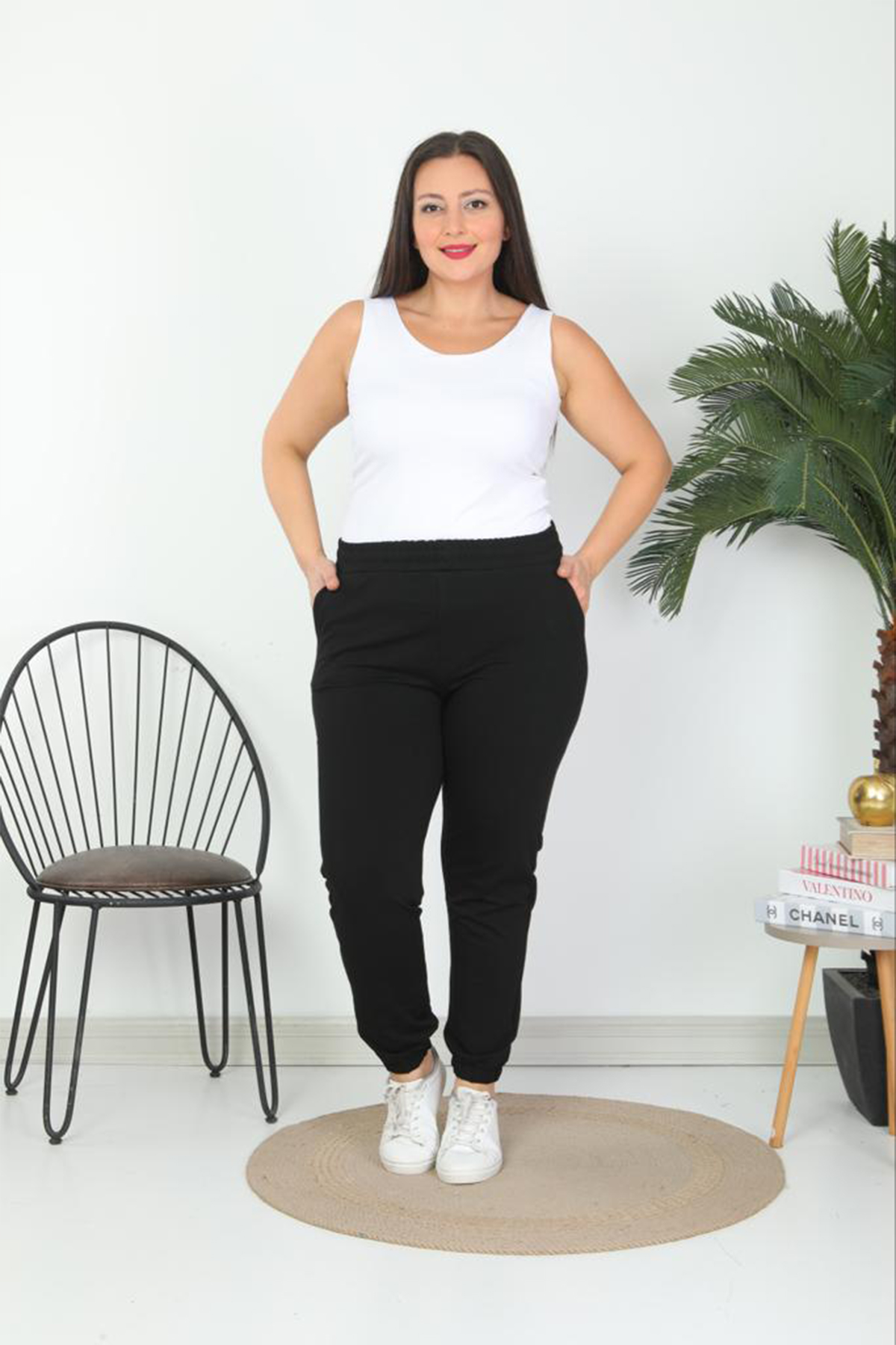Pogi Kadın Tek Alt Eşofman Büyük Beden - Siyah