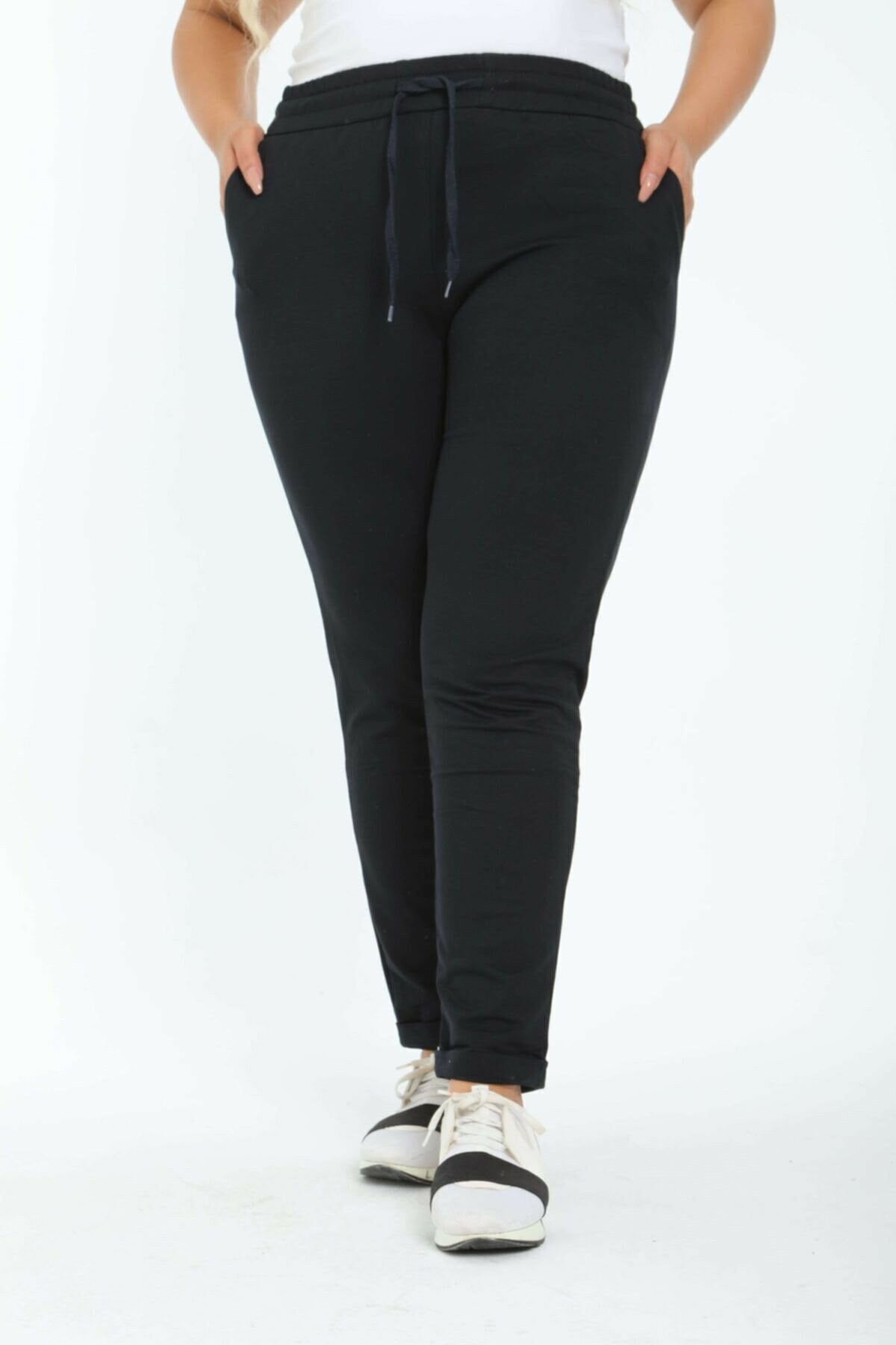 Pogi Kadın Tek Alt Eşofman Büyük Beden - Siyah