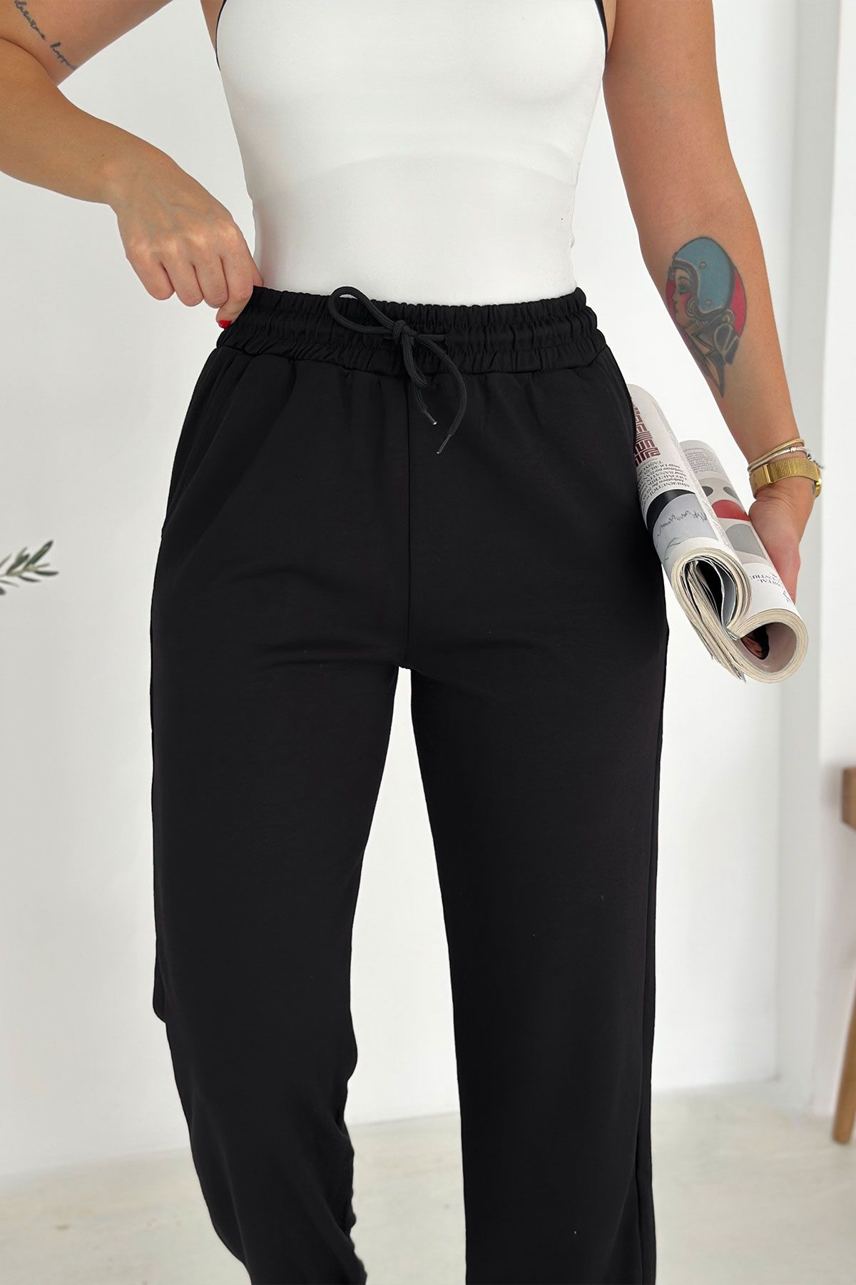Pogi Kadın Tek Alt Eşofman Paça Lastikli - Siyah