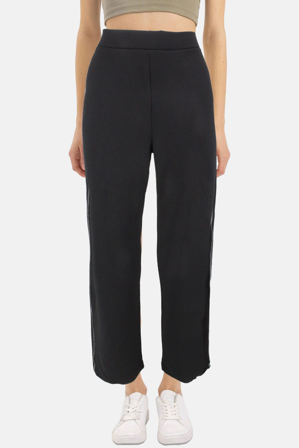 Pogi Kadın Tek Alt Pantolon Krep Büyük Beden Bol Paçalı Sim Şeritli - Siyah