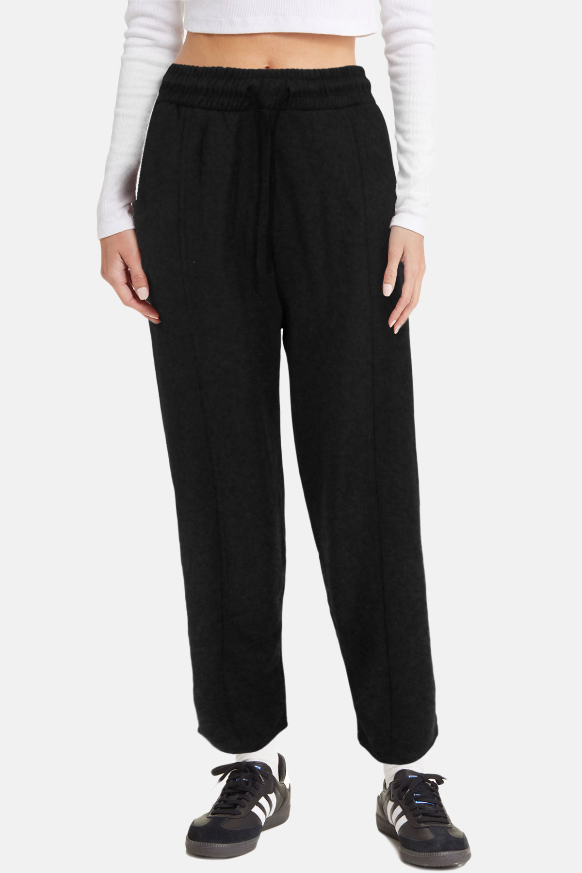 Pogi Kadın Tek Alt Uzun Eşofman Bel Bağlama Detaylı Pamuklu - Siyah