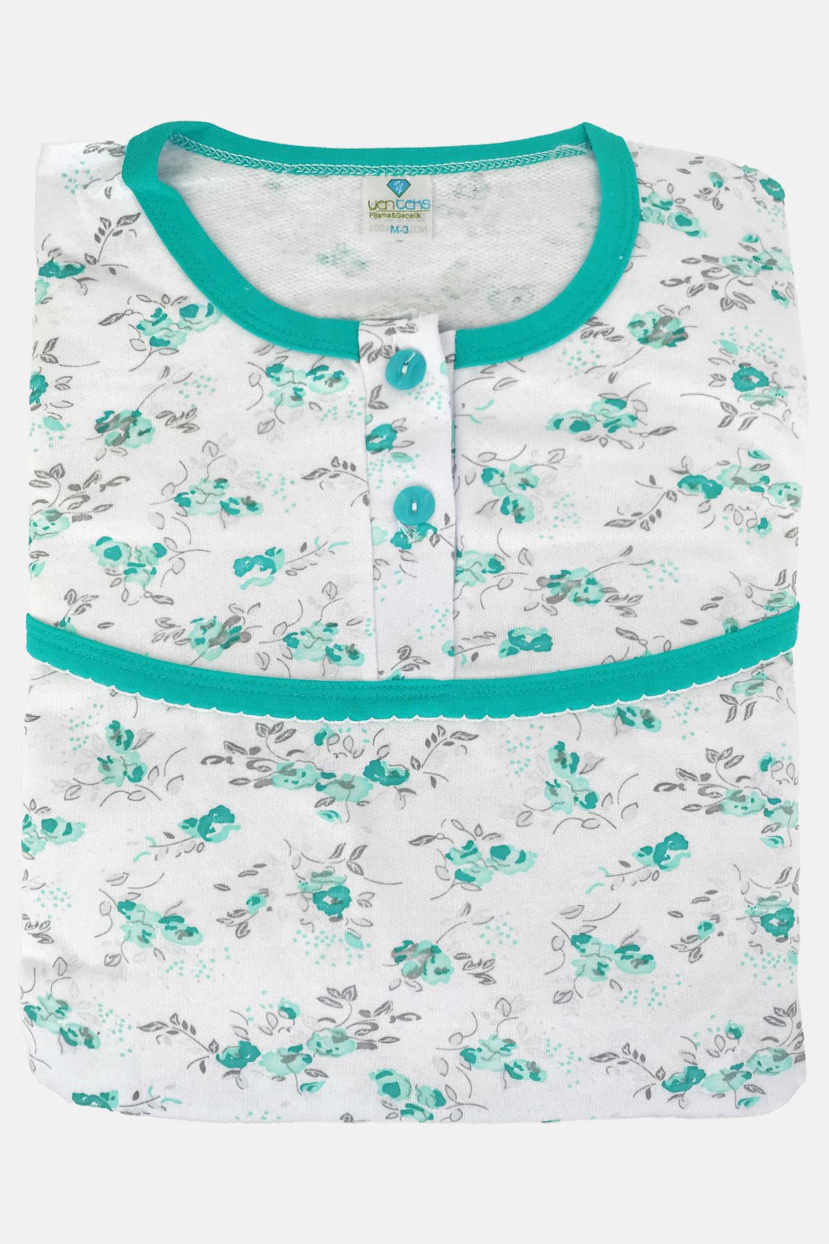 Yenteks Kadın Şardonlu İki Düğmeli Uzun Kollu Pijama Takımı - Su Yeşili